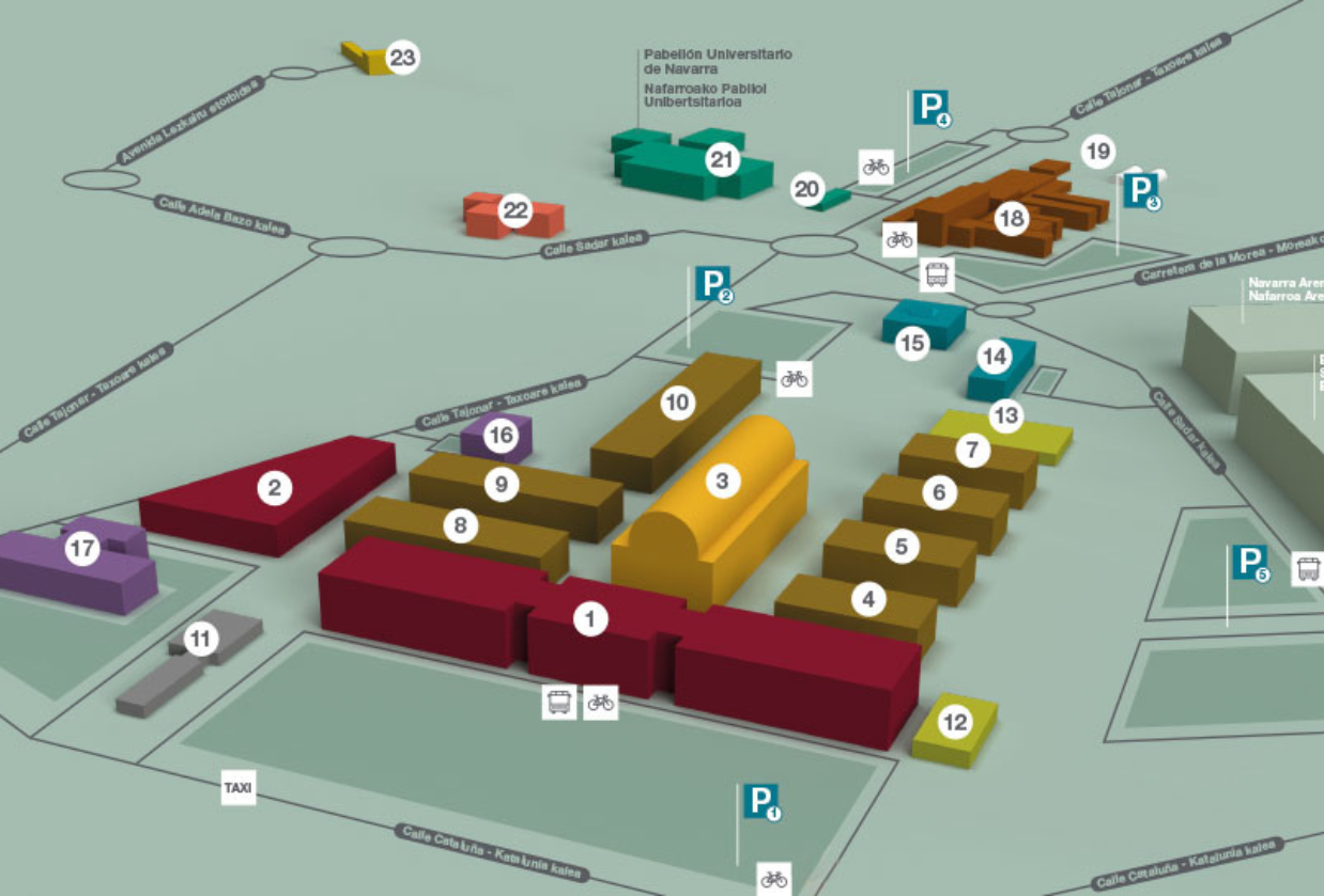 All conference sessions will take place on the ground floor of the Aulario Building, located on the Arrosadia Campus of the Public University of Navarre.